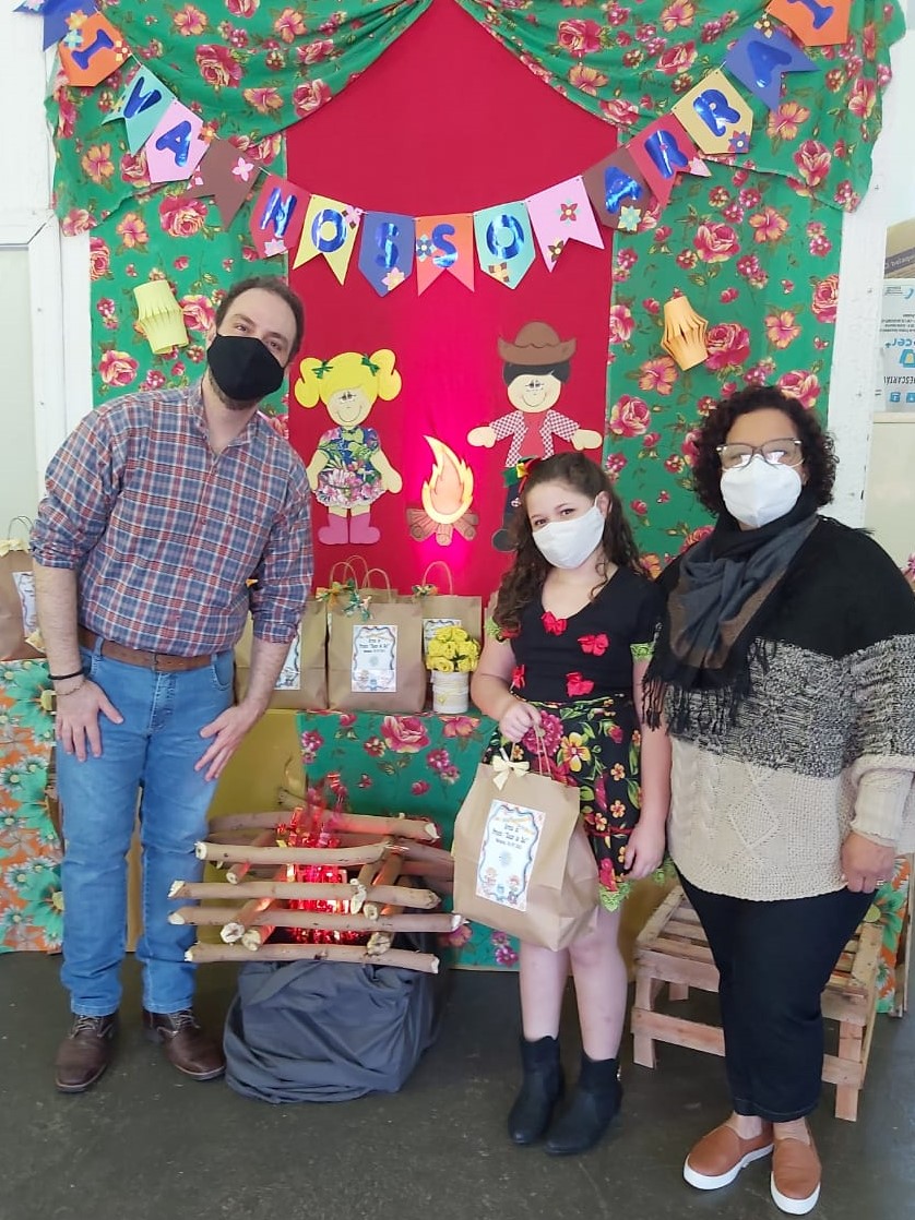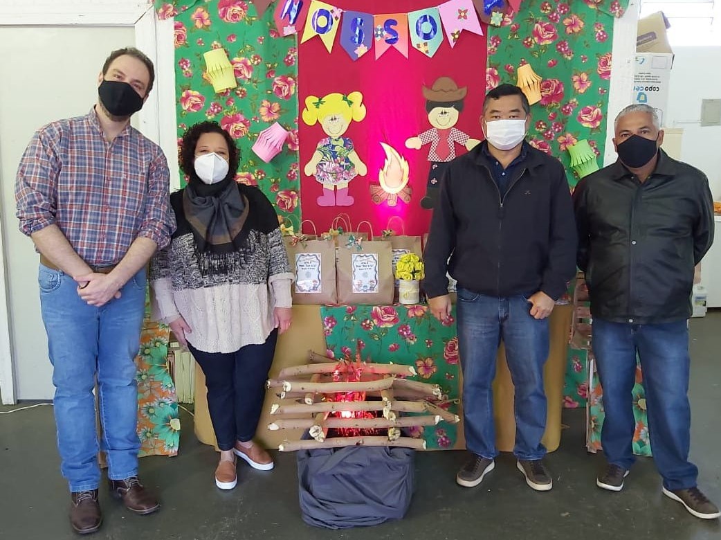 Cada kit foi composto por doces juninos, doce de leite, doce de abóbora e batata doce pipoca doce leite em pó, achocolatado em pó, bolo pronto e estalos de salão. No ato da entrega dos kits, foi ofertada pipoca e chocolate quente, respeitando o distanciamento social.