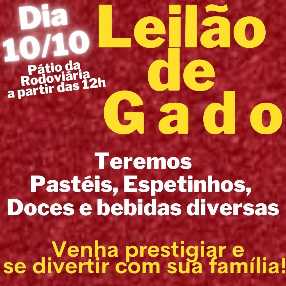 A Paróquia Imaculada Conceição de Mariápolis promove neste domingo (10) seu tradicional leilão de gado, pequenos animais e variedades. A atividade acontece a partir das 12h, no pátio do Terminal Rodoviário da cidade.