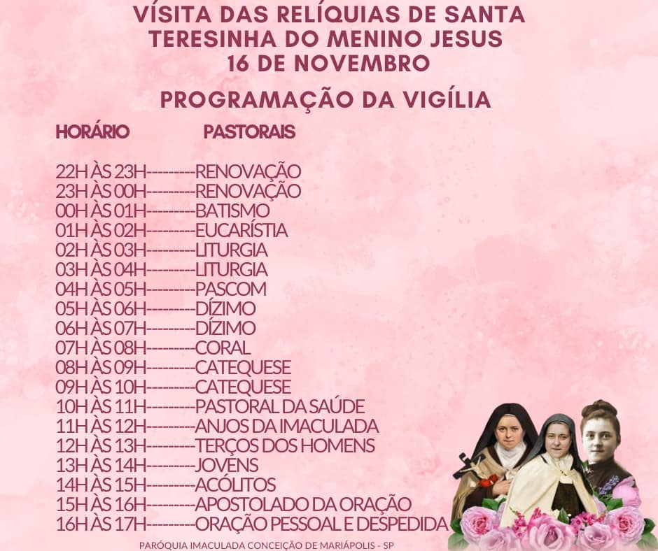 16 de novembro (quarta-feira) – Paróquia Imaculada Conceição (Mariápolis)