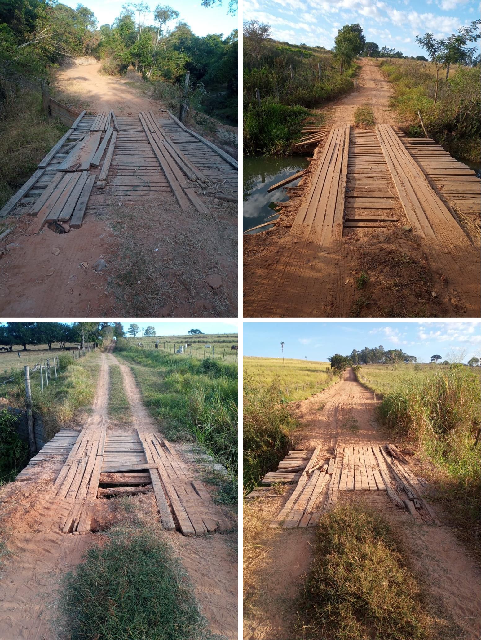 Pontes que receberão melhorias após chegada das madeiras: MRP 452 (Córrego do Saltinho), MRP 444 (Córrego Cascadura), MRP 443 e ainda no Córrego da Rocha (Fotos: Cedidas).