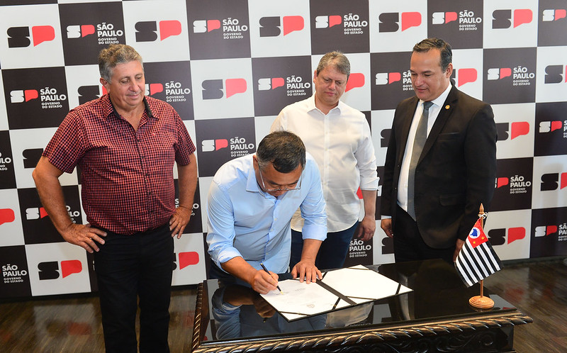 Participaram da cerimônia de assinatura do convênio o prefeito Ricardo Watanabe, o vereador João Luiz Aparecido Belloni, deputado estadual Rogério Santos e governador Tarcísio de Freitas.