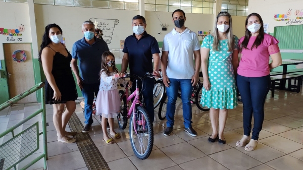 Desta forma, com a utilização de recursos próprios, o município adquiriu as bicicletas e fez o sorteio de uma unidade por sala de aula, de forma transparente, diante dos estudantes, professores, dirigentes da unidade de ensino e dos pais, que puderam acompanhar.