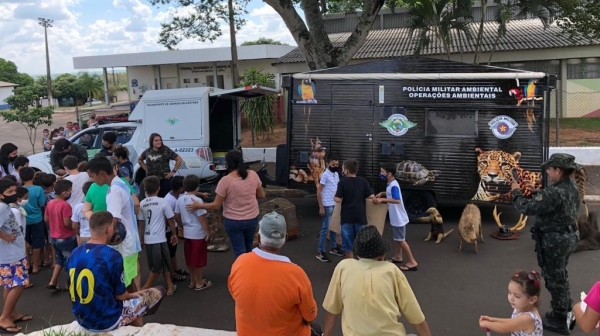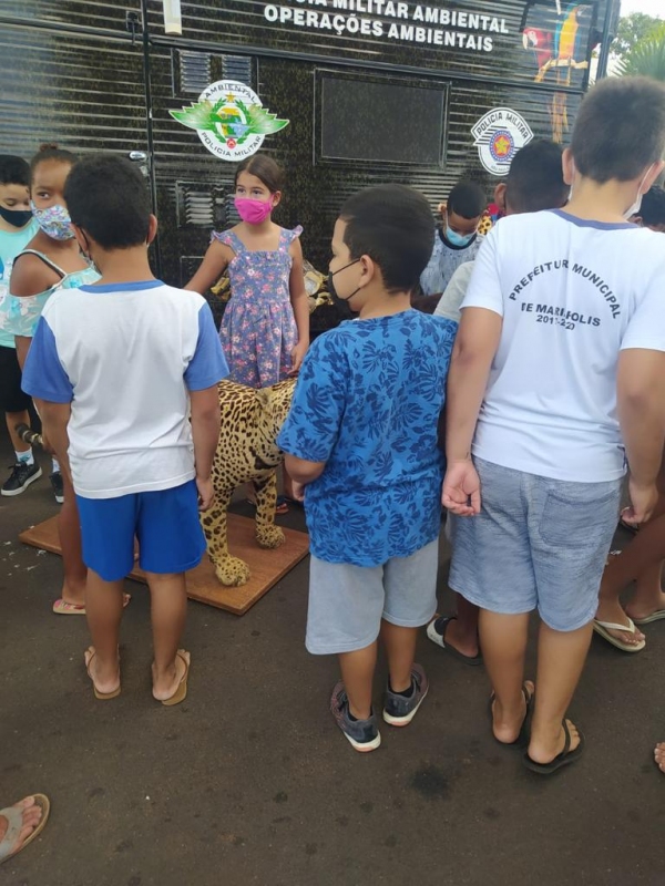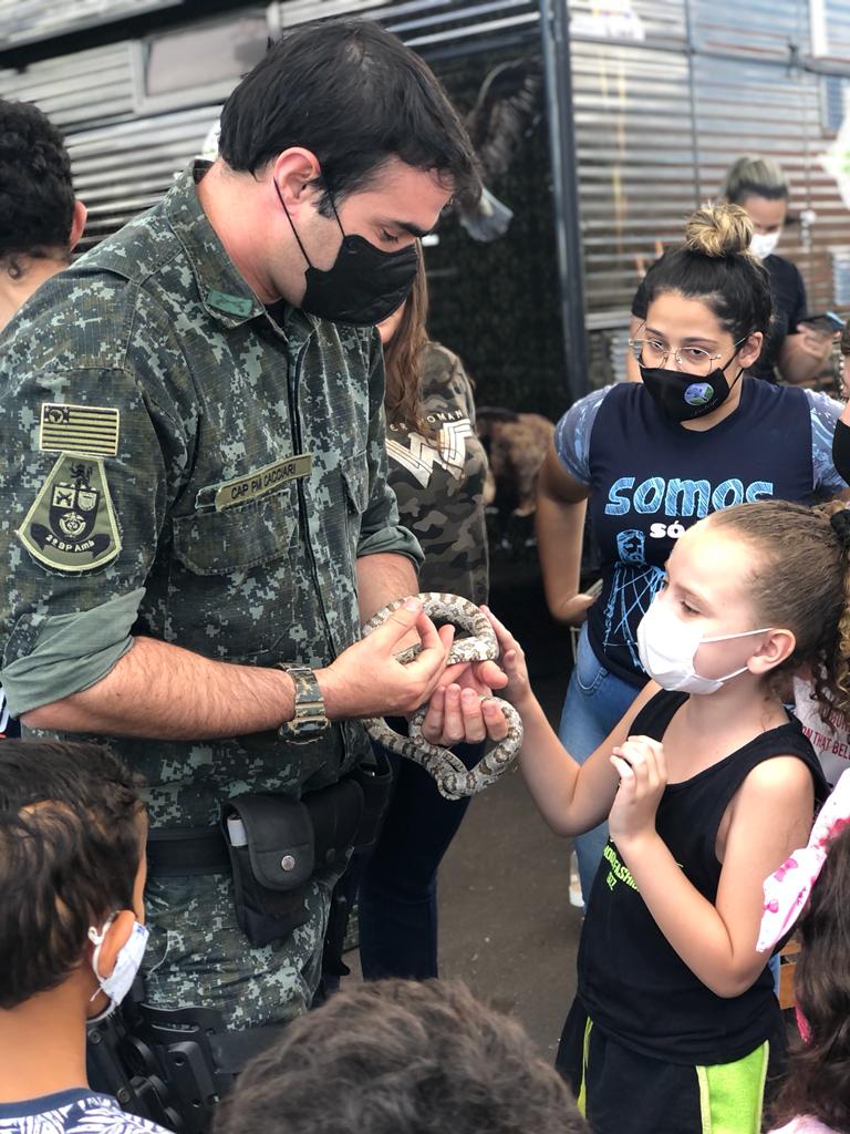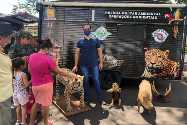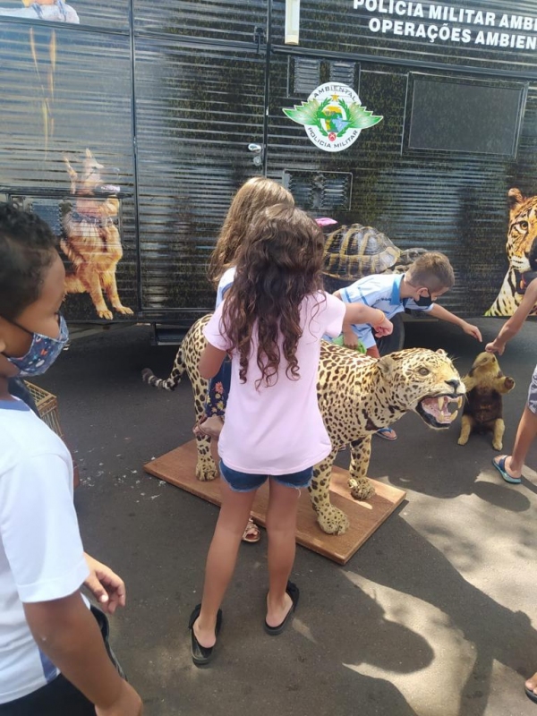 A PM Ambiental montou sua estrutura em frente à Escola, com viatura e o trailer utilizado para ações especiais. No local foram dispostos exemplares da fauna brasileira, embalsamados, o que despertou a atenção dos estudantes. Os estuantes também tiveram contato com animais vivos, como cobras não peçonhentas.