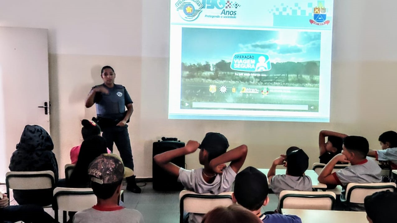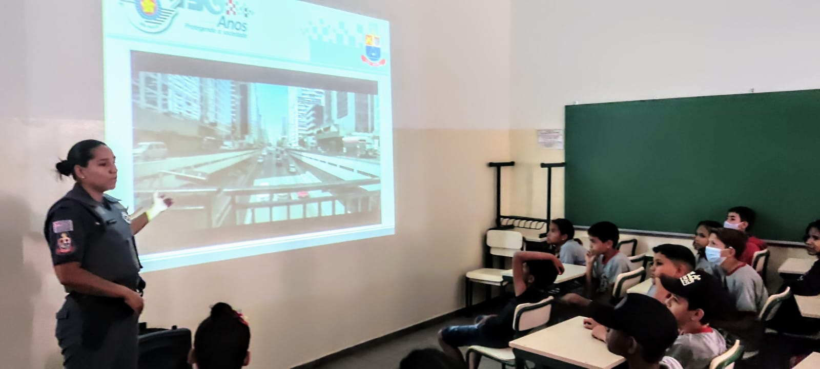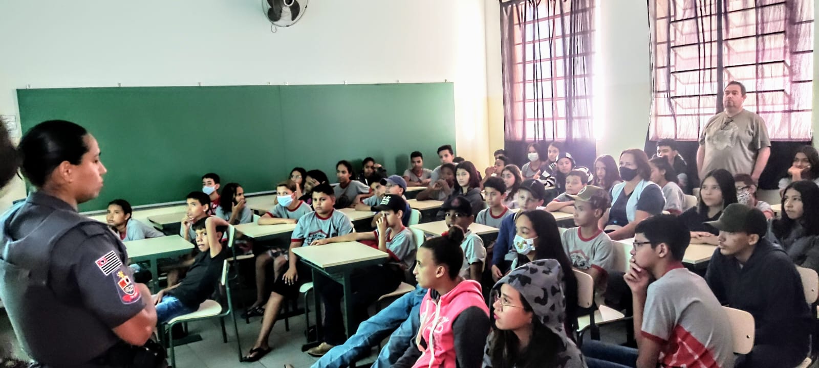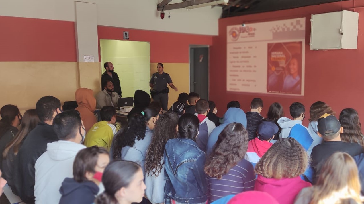 Na última sexta-feira (23) os estudantes da Escola Estadual Professora Elmoza Antônio João, de Mariápolis, receberam palestra sobre trânsito realizada pela Polícia Militar, dentro da Semana Nacional do Trânsito. Também foi realizada palestra sobre a profissão do policial militar.