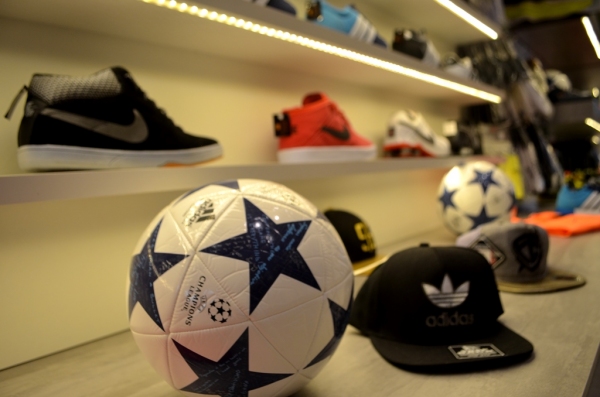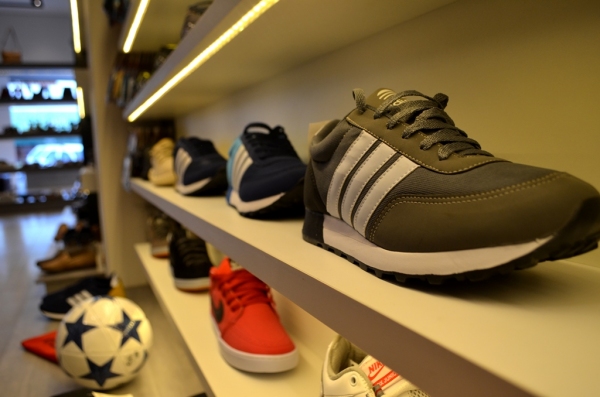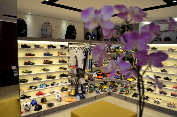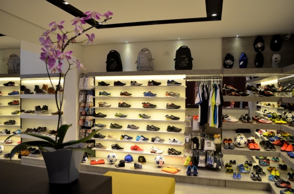 Na linha esportiva, além de tênis de diferentes marcas, a loja dispõe de acessórios como bolas, camisetas, shorts, caneleiras e meias.