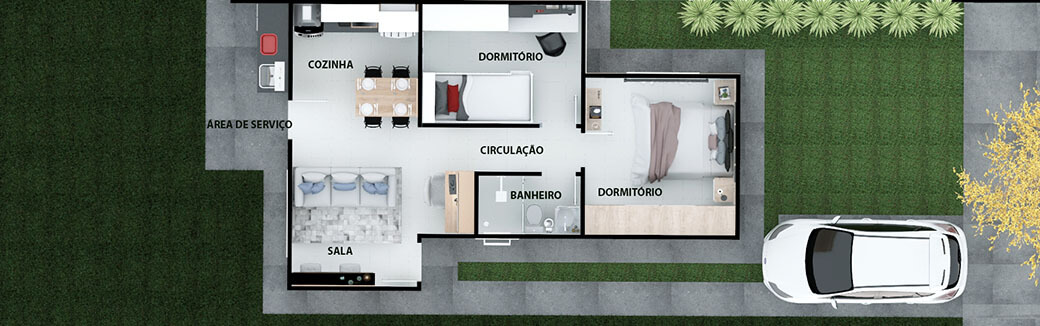 Trata-se de um condomínio fechado, com portaria 24h e áreas comuns de lazer. Essa configuração promove mais conforto, mais lazer e mais comodidade. Segundo revela a LRG, o Eco Ville 2 terá 176 casas, com dois dormitórios, banheiro, cozinha conjugada estilo americano, lavanderia coberta e vaga de garagem.