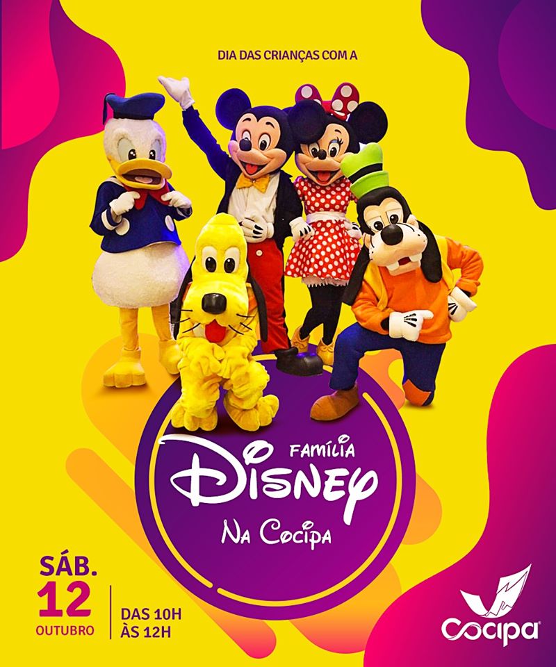 Estamos nos aproximando do Dia das Crianças e a Cocipa promoverá apresentações na loja com a Turma do Mickey. É uma grande oportunidade para que as crianças possam tirar fotos e curtir com alguns dos personagens da Disney. Traga as crianças para se divertir com a gente.
