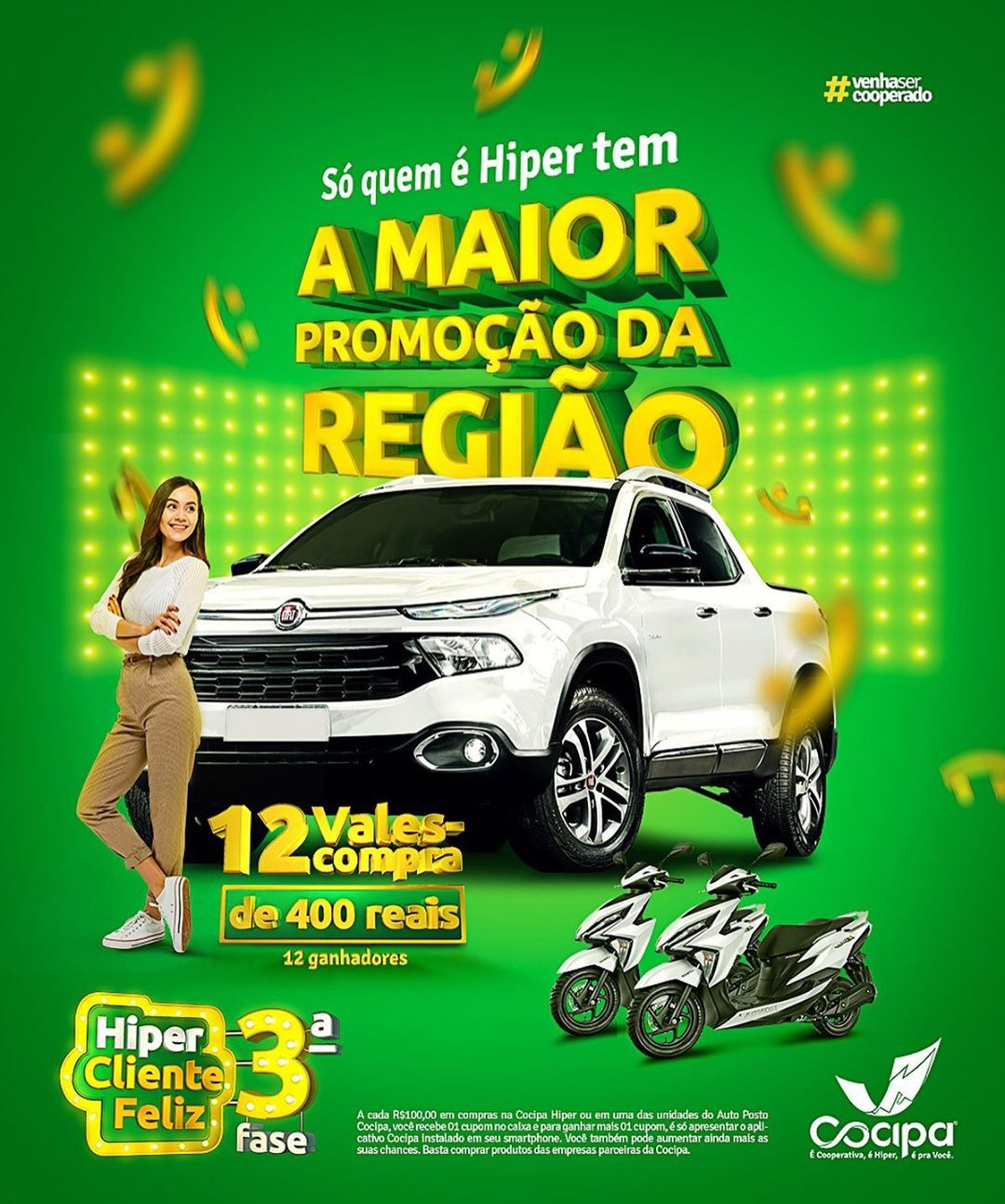 Participam da promoção clientes da Cocipa que realizam suas compras no hipermercado, em Inúbia Paulista, ou nos postos de combustíveis Cocipa de Inúbia Paulista, Osvaldo Cruz e Adamantina. A atual fase foi iniciada dia 6 de outubro e se encerra neste domingo com os sorteios.