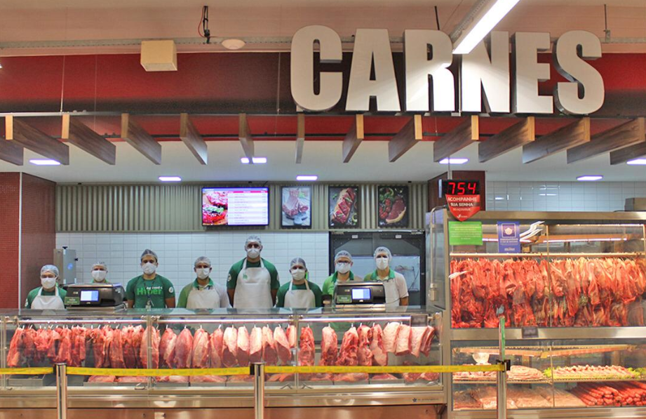 As gôndolas refrigeradas e ilhas de congelados ocupam um espaço de destaque, na área do açougue, onde o cliente tem acesso direto aos mais diversos cortes fracionados e embalados pela própria equipe, bem como os produtos de referência das principais marcas que abastecem o mercado brasileiro. Há um amplo catálogo de cortes embalados, com procedências garantidas, com apelo à precocidade dos animais abatidos.