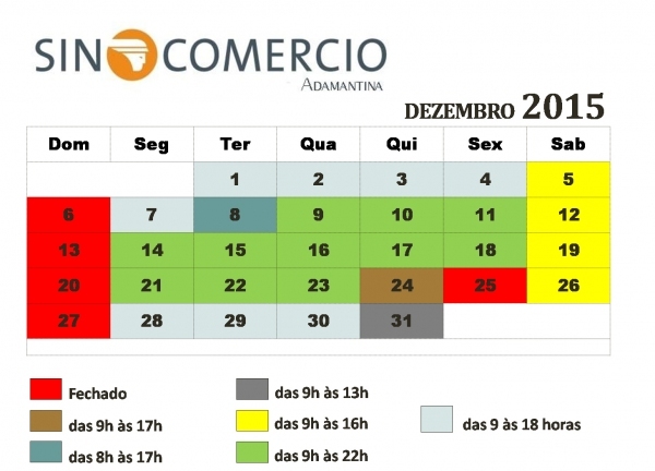 Nos sábados de dezembro (12, 19 e 26) o comércio funcionará das 9h às 16h.