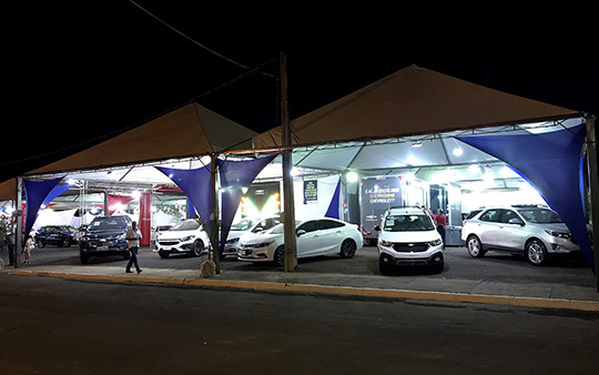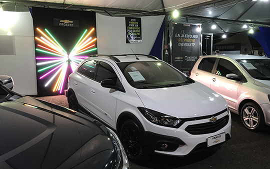 Estrutura montada pela Proeste apresenta veÃculos da Chevrolet para o púbico de Adamantina e região.
