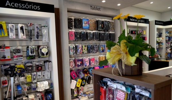 Além das capas e películas, que são o “carro-chefe” da loja, o cliente encontra cabos, carregadores, conectores, fones de ouvido, além de acessórios de informática, joystick, mouses, caixas de som speakers USB e outros itens de primeira necessidade para fãs de tecnologia.