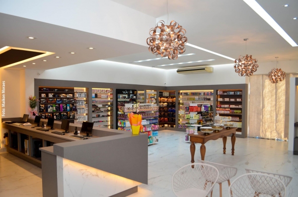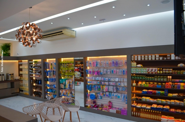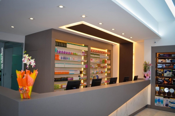 O espaço de atendimento da Pharmácia Chamomilla foi totalmente reconfigurado, com cuidados quanto à luminosidade, acessibilidade, tráfego e circulação do público consumidor.