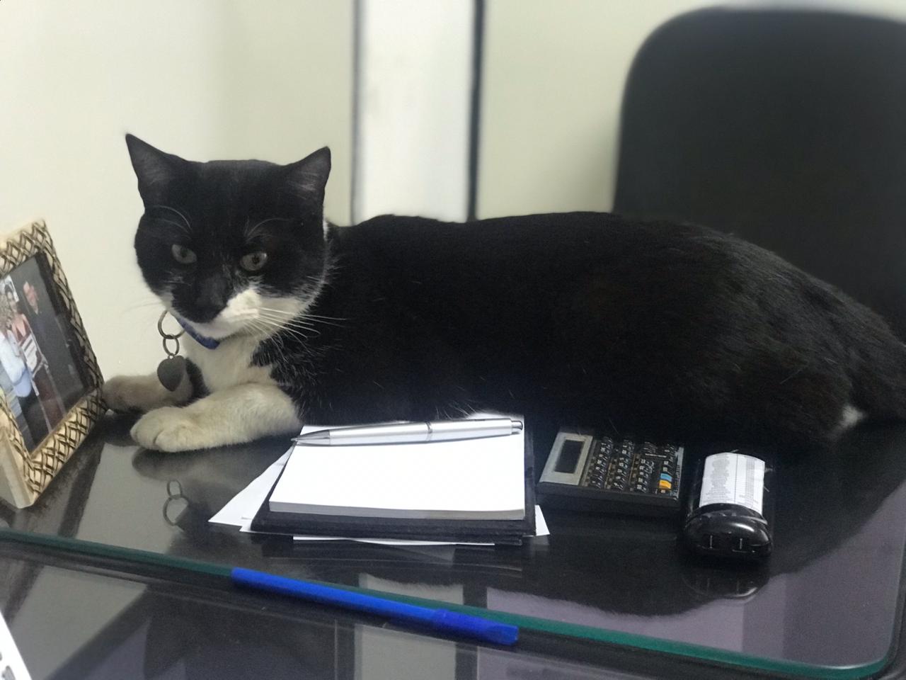 Frank toma conta da mesa de trabalho em Adamantina (Divulgação).
