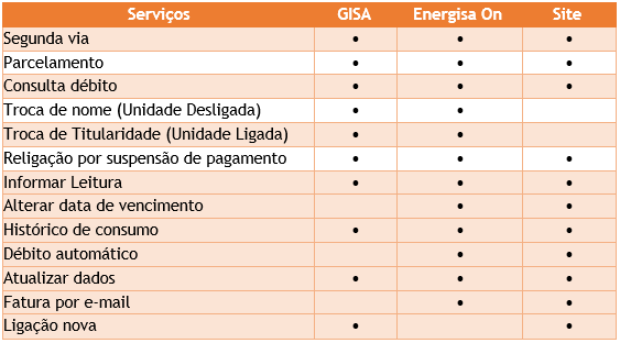 Além da Gisa, a empresa oferece outros canais de atendimento, como o aplicativo Energisa On, onde o cliente pode acessar pelo celular inúmeros serviços, e o site da Energisa. Solicitações como segunda via de contas, religação, suspensão voluntária de fornecimento e parcelamento de contas atrasadas estão entre os serviços que podem realizados nesses canais.