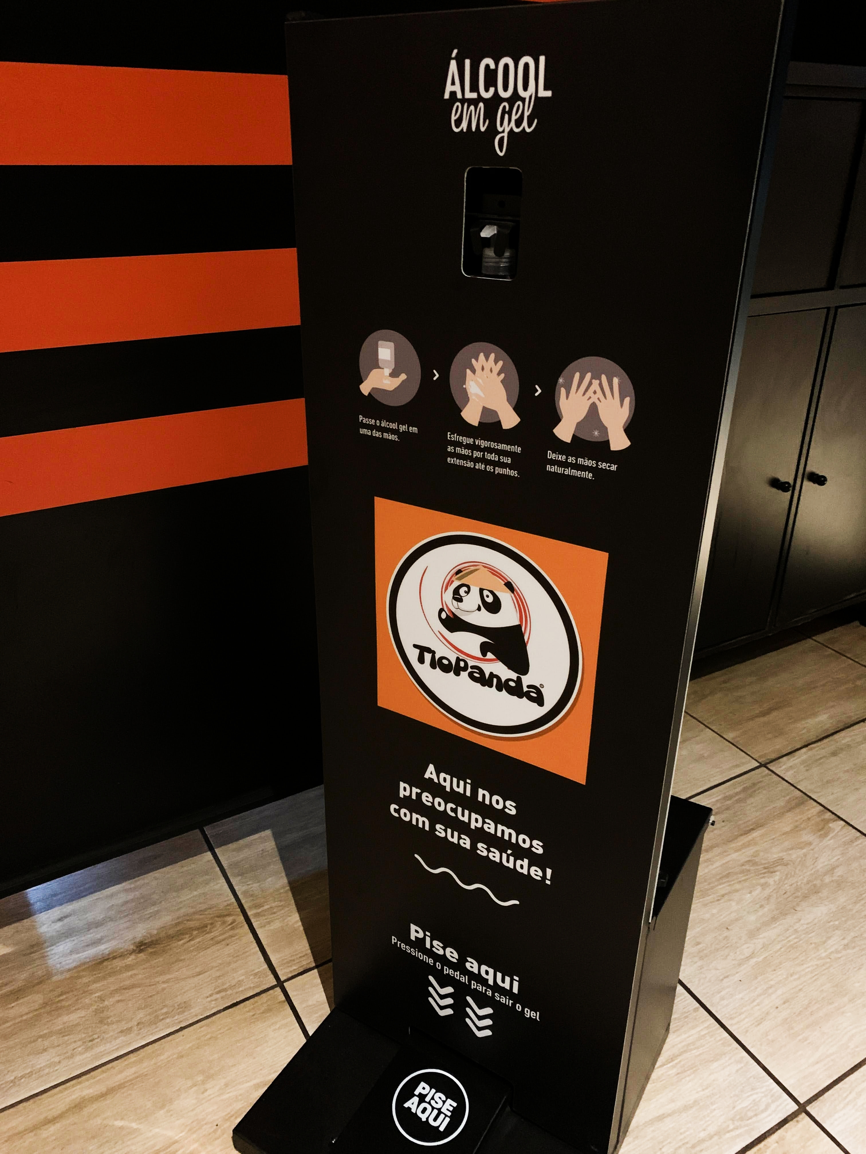 Totem de álcool gel: dispositivo presente no salão do restaurante (Foto: Siga Mais).