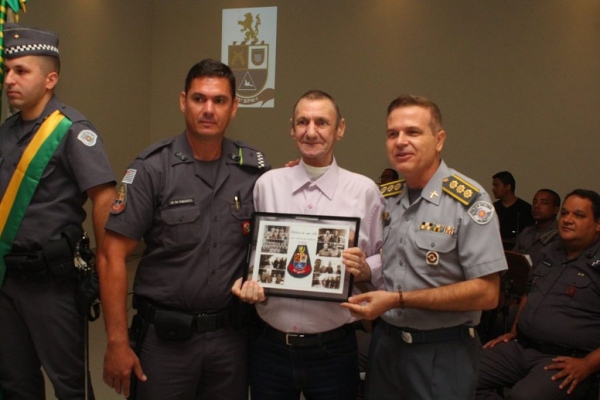 Foram homenageados os policiais militares veteranos, na pessoa dos cabos Ramazotti e Andrade, porque ao longo dos 10 anos de carreira trabalharam juntos na mesma viatura e atualmente seus filhos desempenham a mesma função atuando em Adamantina.