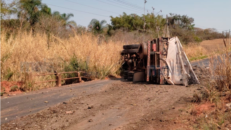 Acidente entre caminhões com cargas de ovos e esterco de galinha deixa três feridos em vicinal