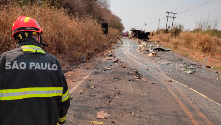 Posição final dos veÃculos e cargas espalhadas na pista levaram à interdição total do local.