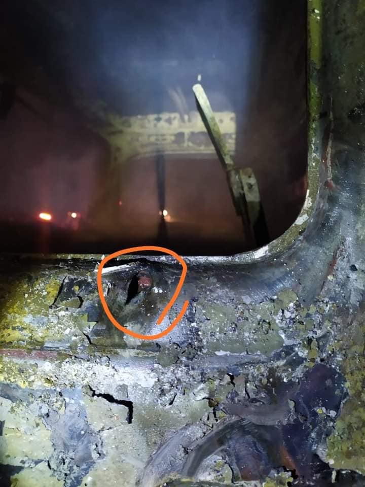 Após o clarear do dia foi constatado pelos peritos da Polícia Científica uma marca na porta do motorista, aparentando ser causada por projétil de arma de fogo.
