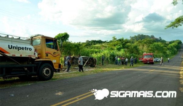 Um caminhão carregado de óleo diesel, de uma empresa distribuidora sediada em Tupã, seguia no sentido Mariápolis/Adamantina, e no referido local reduziu a velocidade e ingressou à direita, com vistas a cruzar a pista e ingressar em uma propriedade rural, onde faria a entrega de combustível.