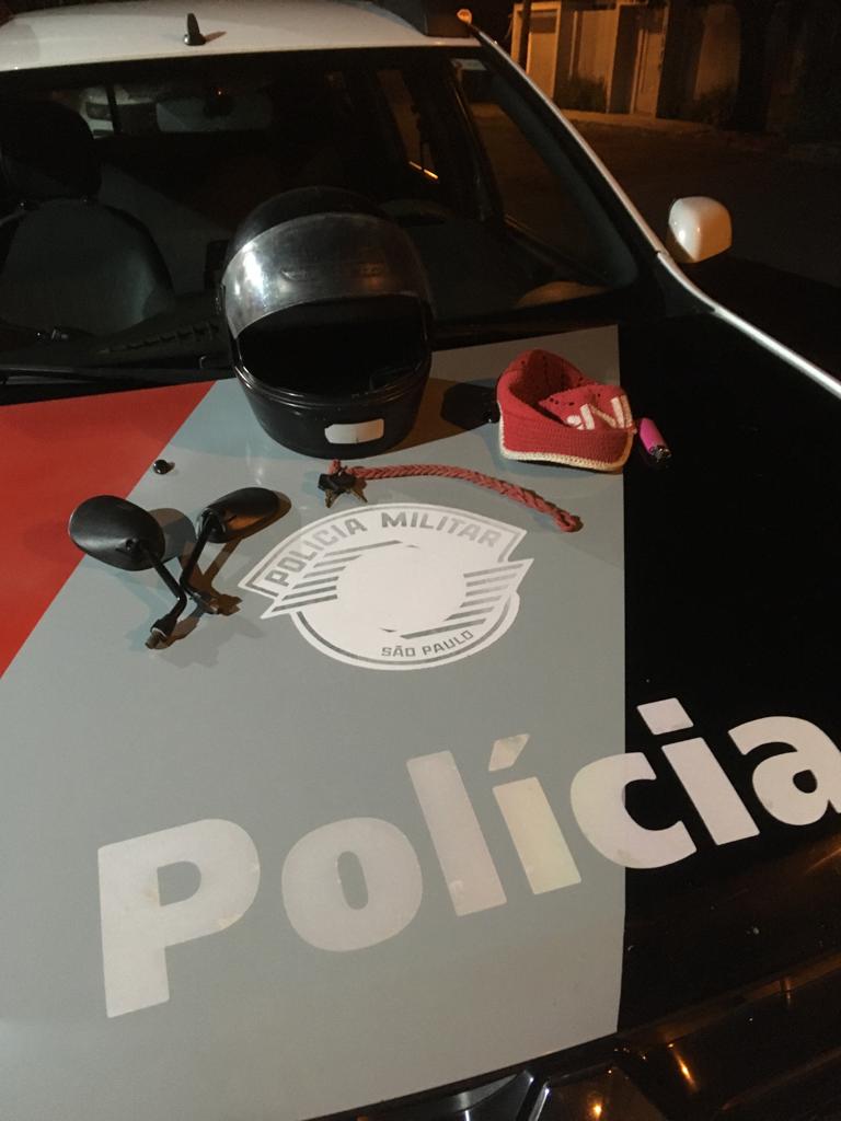 A equipe que atendeu a ocorrência informou via Copom o emplacamento e características da motocicleta furtada, sendo que instantes depois uma outra equipe policial, informou que havia localizado a motocicleta e um capacete, por Inúbia Paulista, na Rua Venceslau Brás.