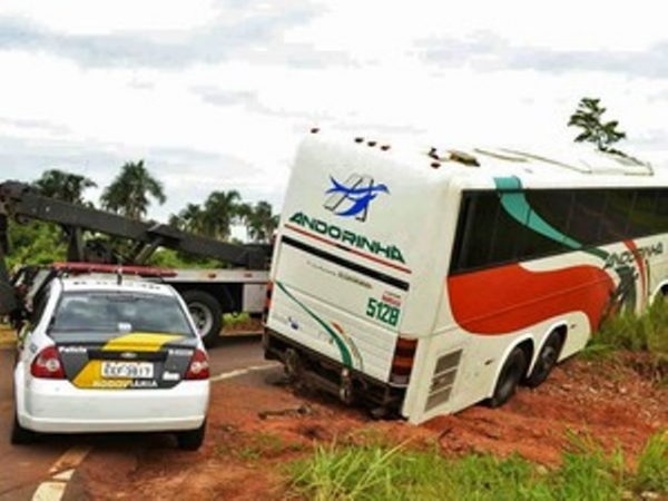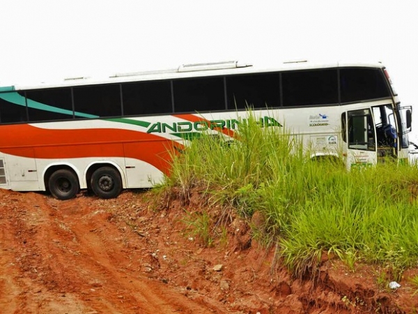 Um ônibus com 42 passageiros ficou preso na alça de acesso da Rodovia Assis Chateaubriand, em Osvaldo Cruz. De acordo com a Polícia Militar Rodoviária, a ocorrência teve início por volta das 3h25 deste sábado (19).