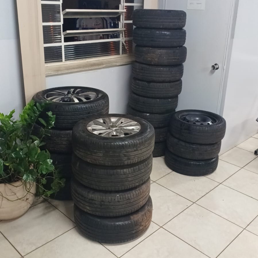 Pneus e rodas furtados do pátio de apreensões e recuperados (Cedida/PM Rodoviária).