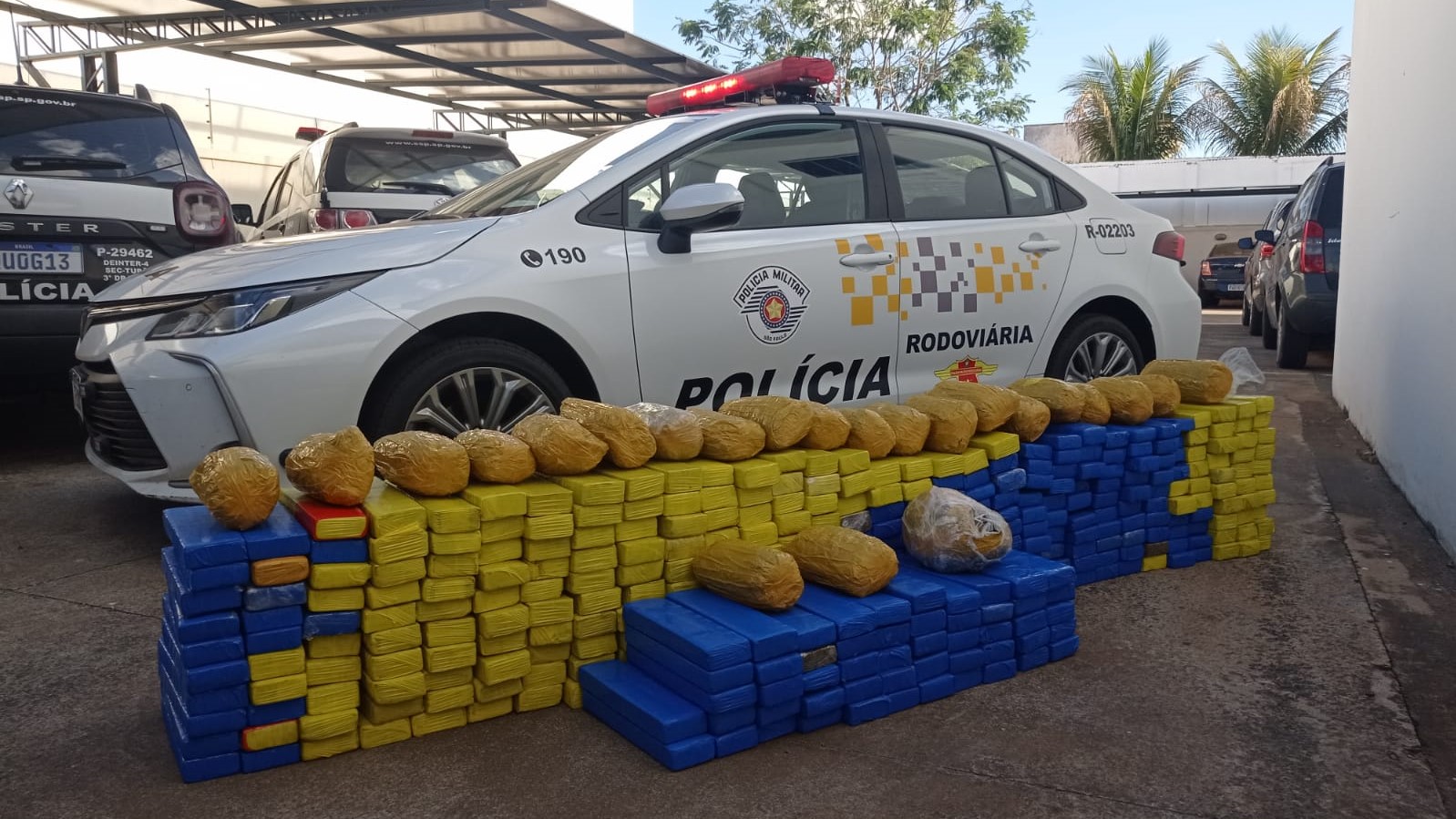 Carro levava grande quantidade de drogas em eu interior. Tráfico foi descoberto pela PM Rodoviária.