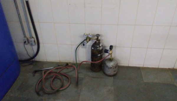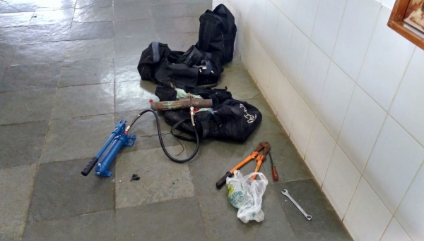 No local, foram encontrados maçarico, cilindro de gás, botijão de gás e explosivos.