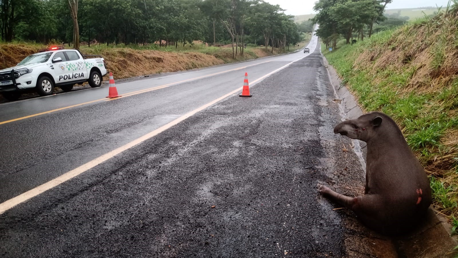 Atropelada e ferida, anta é resgatada na estrada que liga Osvaldo Cruz a Salmourão
