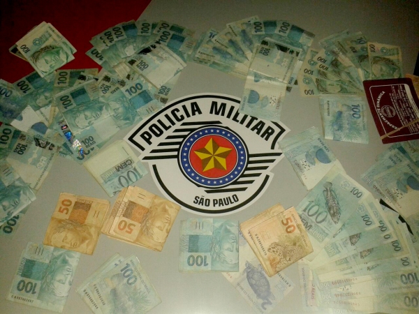 Ao realizar buscas no interior do veículo, foram encontrados R$ 10.850,00, e nas proximidades uma bolsa contendo apetrechos utilizados na prática do furto.