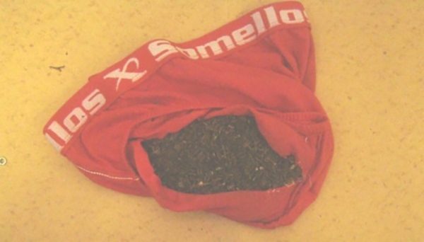 A visitante R.S.G. tentou entrar no presídio para visitar o companheiro, neste sábado (5), vestida de peça íntima (calcinha) com fundo falso onde escondia substância esverdeada, supostamente maconha. A descoberta foi possível graças à precisão do aparelho de revista mecânica, Boddy Scanner. A Polícia Militar foi acionada e conduziu a mulher à delegacia, a qual também foi suspensa do rol de visitas.