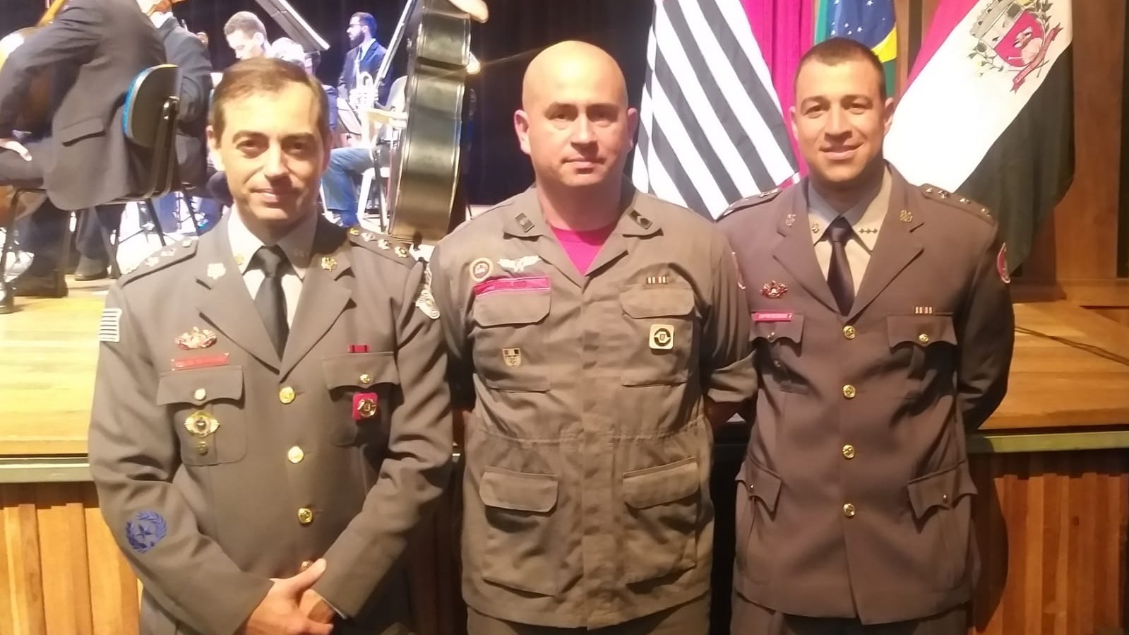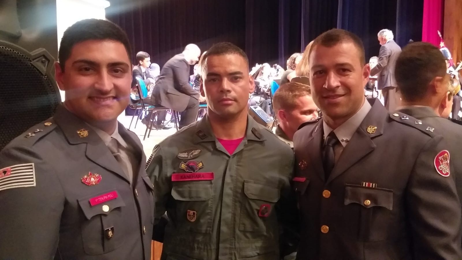 1º tenente PM Poli, soldado PM Kanehara e capitão PM Pecoraro (Cedida).