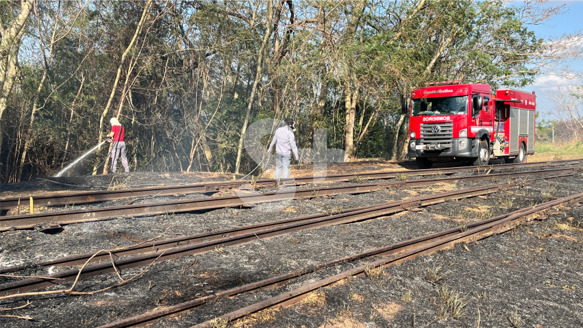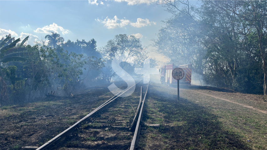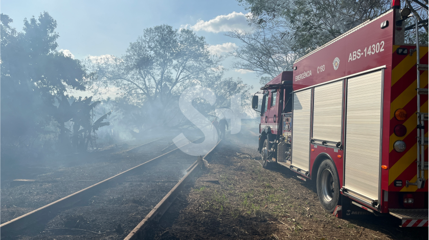 Bombeiros combatem incêndio em faixa lindeira à via férrea (Siga Mais).
