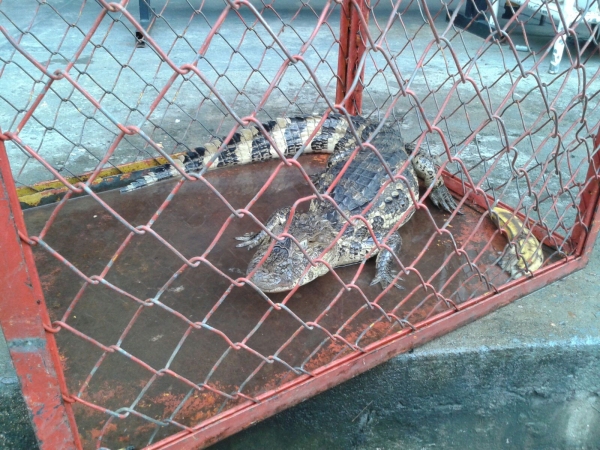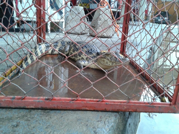 Desde ontem, o jacaré – com cerca de 1,5m de cumprimento – está contido em uma jaula e aguarda a vinda do policiamento ambiental para retirá-lo, quando será decida a destinação do animal.