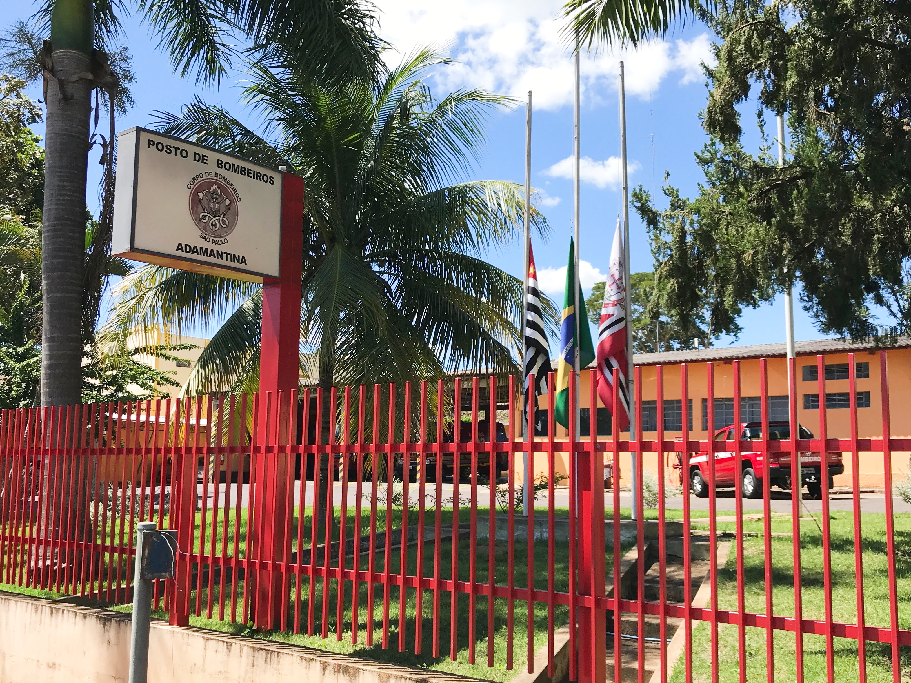 Bandeiras a meio mastro no quartel do Corpo de Bombeiros em Adamantina (Foto: Siga Mais).