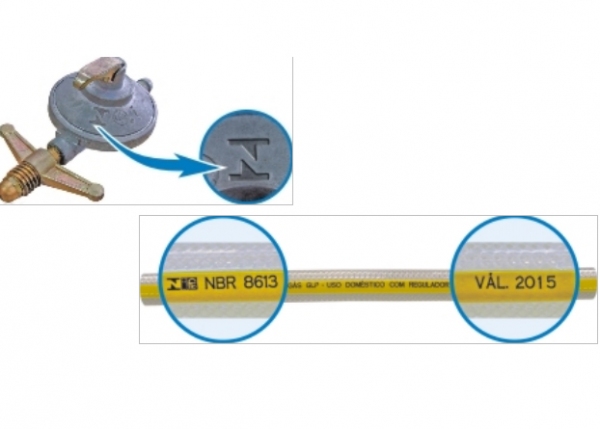 Instalar o botijão de gás no fogão é coisa relativamente simples, mas que exige cuidados. Em primeiro lugar, é preciso usar uma mangueira de gás e um regulador de pressão de gás aprovados pelo Inmetro. A mangueira é transparente com uma tarja amarela e traz a inscrição NBR8613 e a data de validade. O regulador de pressão tem a marca Inmetro gravada e é válido por cinco anos, após o que precisa ser substituído.