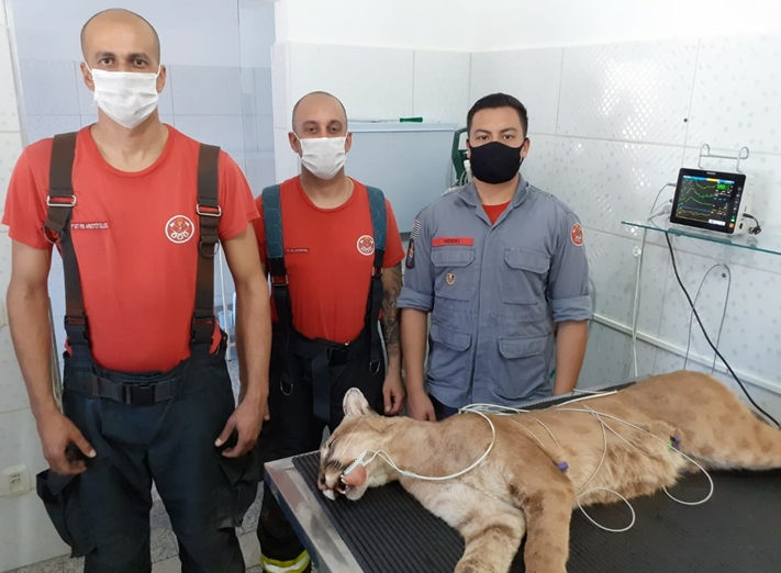 Os bombeiros que atenderam a ocorrência também acionaram a Polícia Ambiental, que efetuarão a soltura da onça parda, após o animal ser liberado pelo médico veterinário.