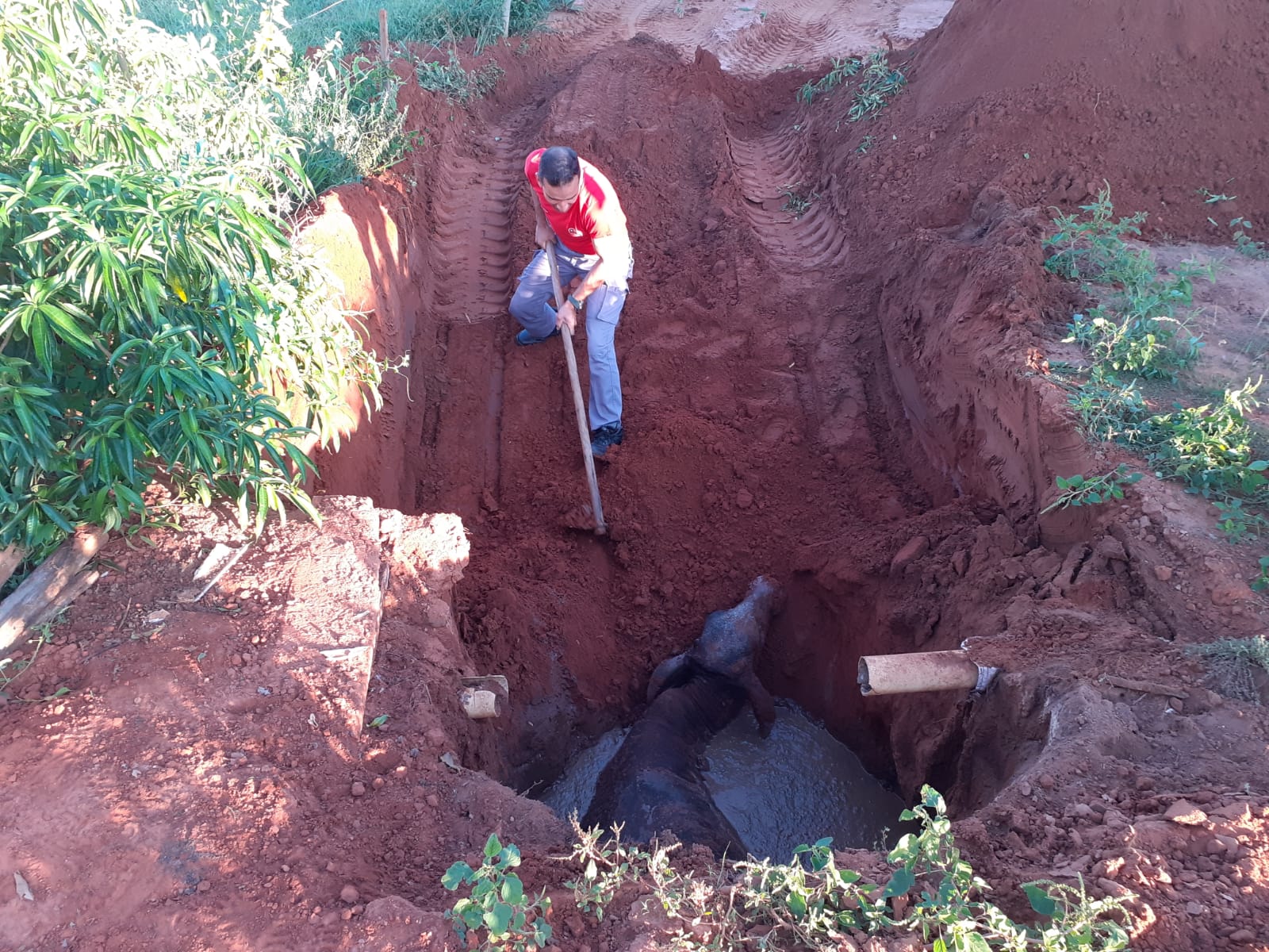 Na tarde da última-feira (22) o Corpo de Bombeiros de Tupã foi acionado para o resgate de uma vaca que havia caído em uma fossa séptica em uma propriedade de Parapuã, localizada no bairro Vitória. A estrutura recebe esgoto do local.