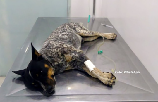Alessandra levou "Tico" ao veterinário que constatou fraturas numa das patas, costela e também da bacia.