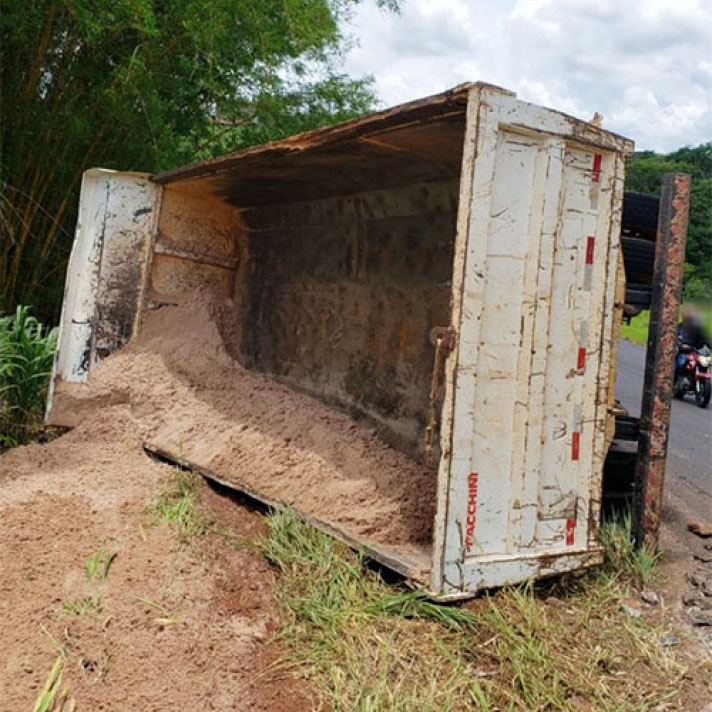Segundo informações, o motorista, que é funcionário público da Prefeitura de Quintana, conduzia o caminhão carregado de areia pela vicinal e, por motivos a serem esclarecidos, o veículo acabou tombando. (Continua após a publicidade...)