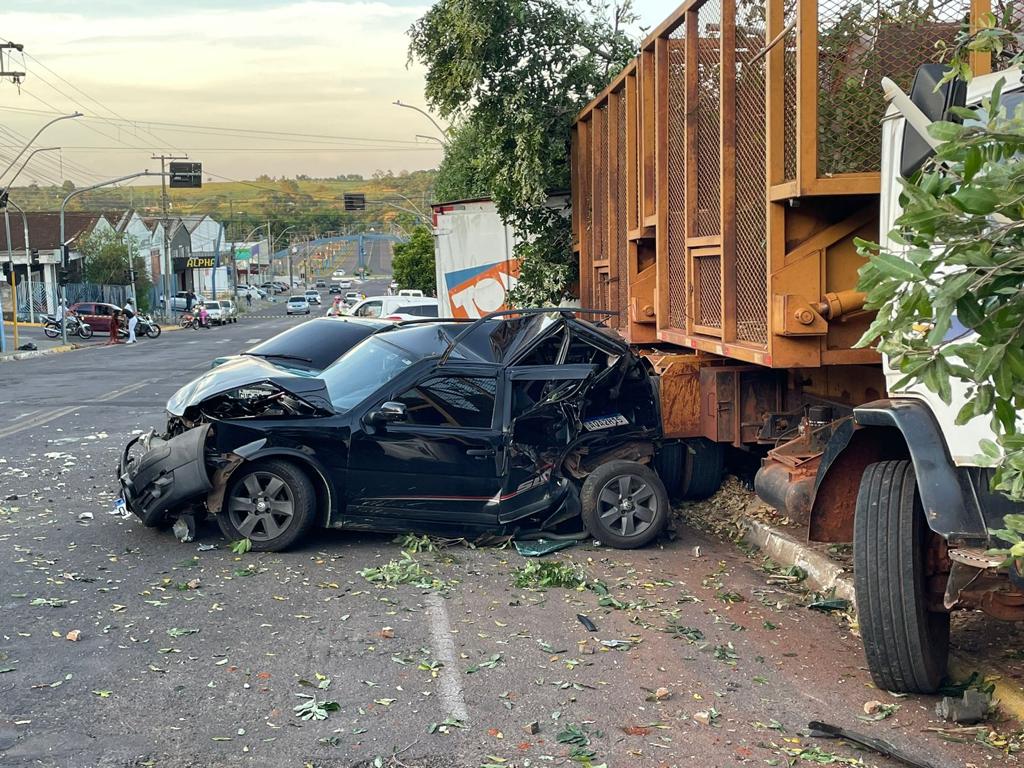 Caminhão se desprende de guincho e, desgovernado, atinge quatro veÃculos, poste e árvore em Lucélia