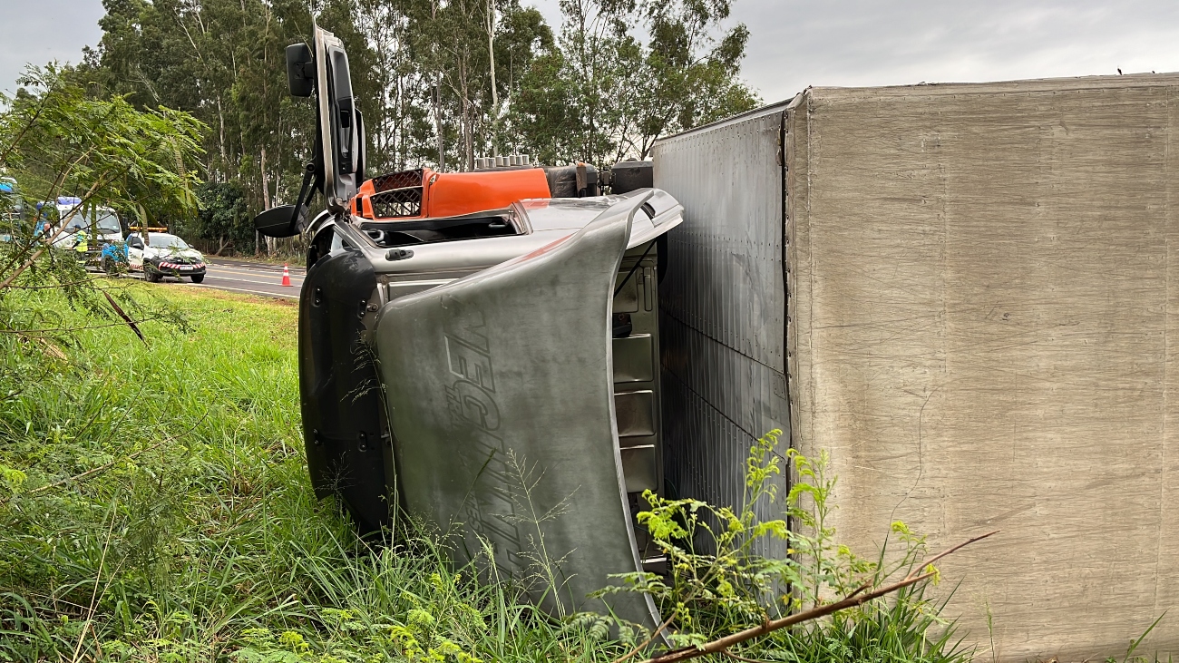Após a liberação das autoridades, o caminhão será destombado e removido do local.