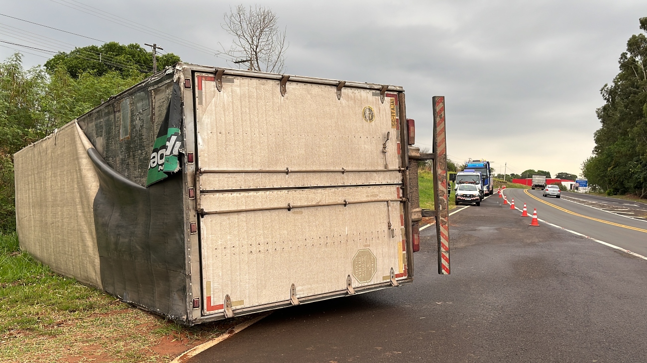 Um caminhão baú tombou na Rodovia Comandante João Ribeiro de Barros (SP-294), em Adamantina, na tarde desta terça-feira (14). O acidente foi por volta das 13h30, na altura do km 594+400, no início do acesso ao trevo do campus II do Centro Universitário de Adamantina. O condutor se feriu levemente, sem gravidade, levado pelas equipes de resgate ao pronto-socorro da Santa Casa local, para avaliação.