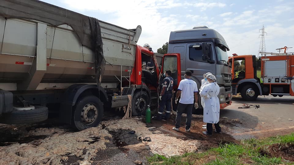 De acordo com a Polícia Rodoviária Federal (PRF), um dos caminhões atingiu o outro enquanto cruzava a pista, no trevo.