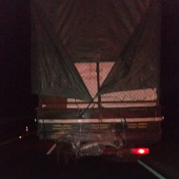 Caminhão foi atingido na traseira (Cedida/PM Rodoviária).