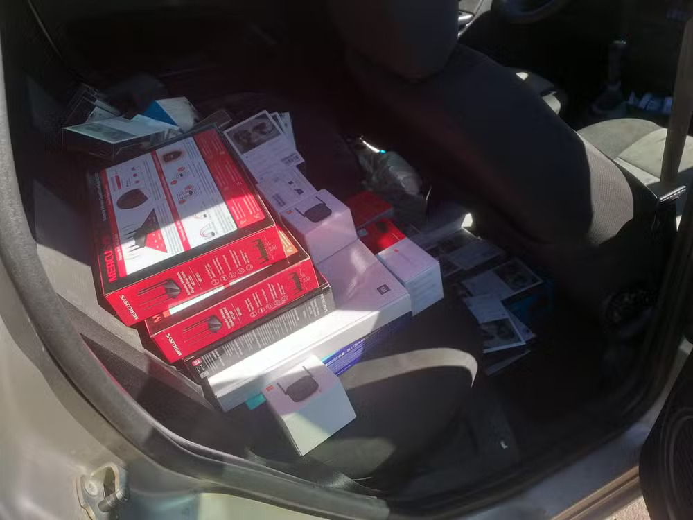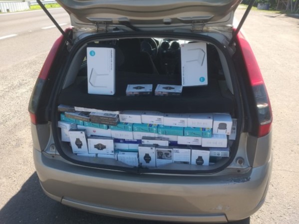 No interior do carro os policiais encontraram diversos equipamentos eletrônicos no banco traseiro e porta-malas. Foram localizados 307 produtos eletrônicos, dentre estes 140 relógios, 65 roteadores, 20 webcams, 20 antenas, 10 fones de ouvido, cinco caixas de som, duas balanças bioimpedância e 45 outros dispositivos, todos desprovidos de documentação fiscal.