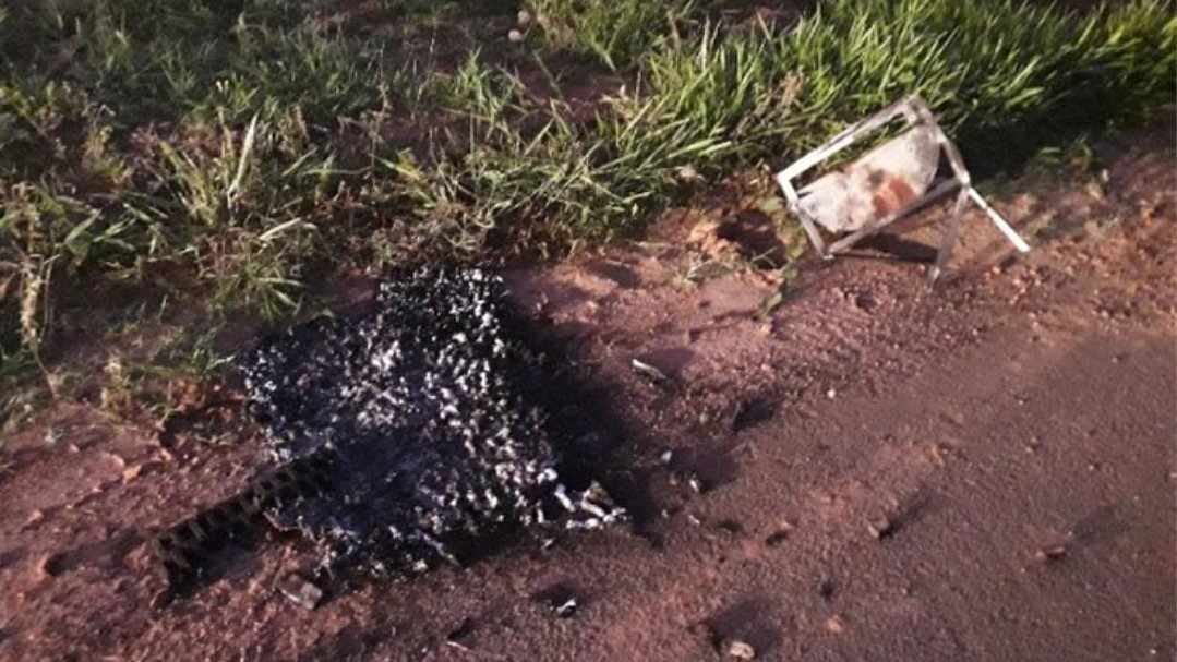 Fragmentos da churrasqueira encontrados no local (Cedida/Polícia Militar).
