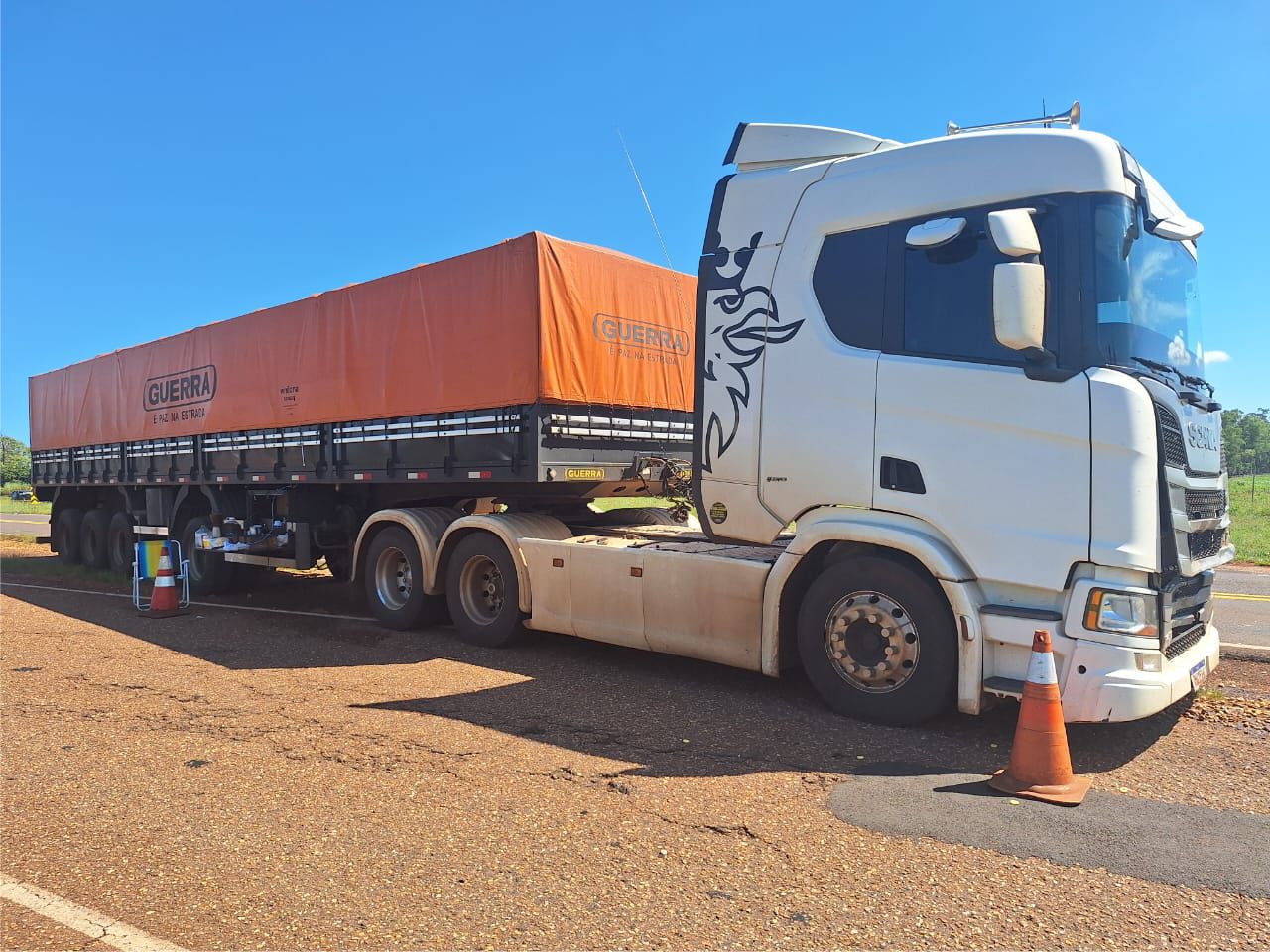 Veículo de carga envolvido na ocorrência (Cedida/PM Rodoviária).